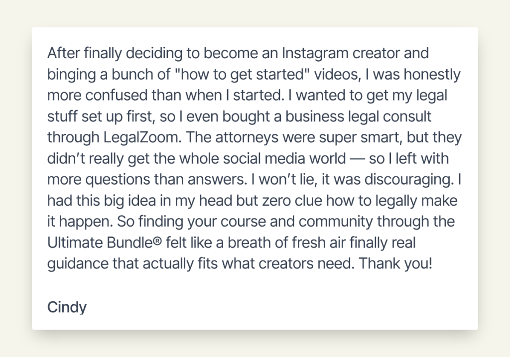 The go-to legal program for online business owners to get protected—14 DIY Legal Contract templates, ongoing access to the training and support, including all future program updates.